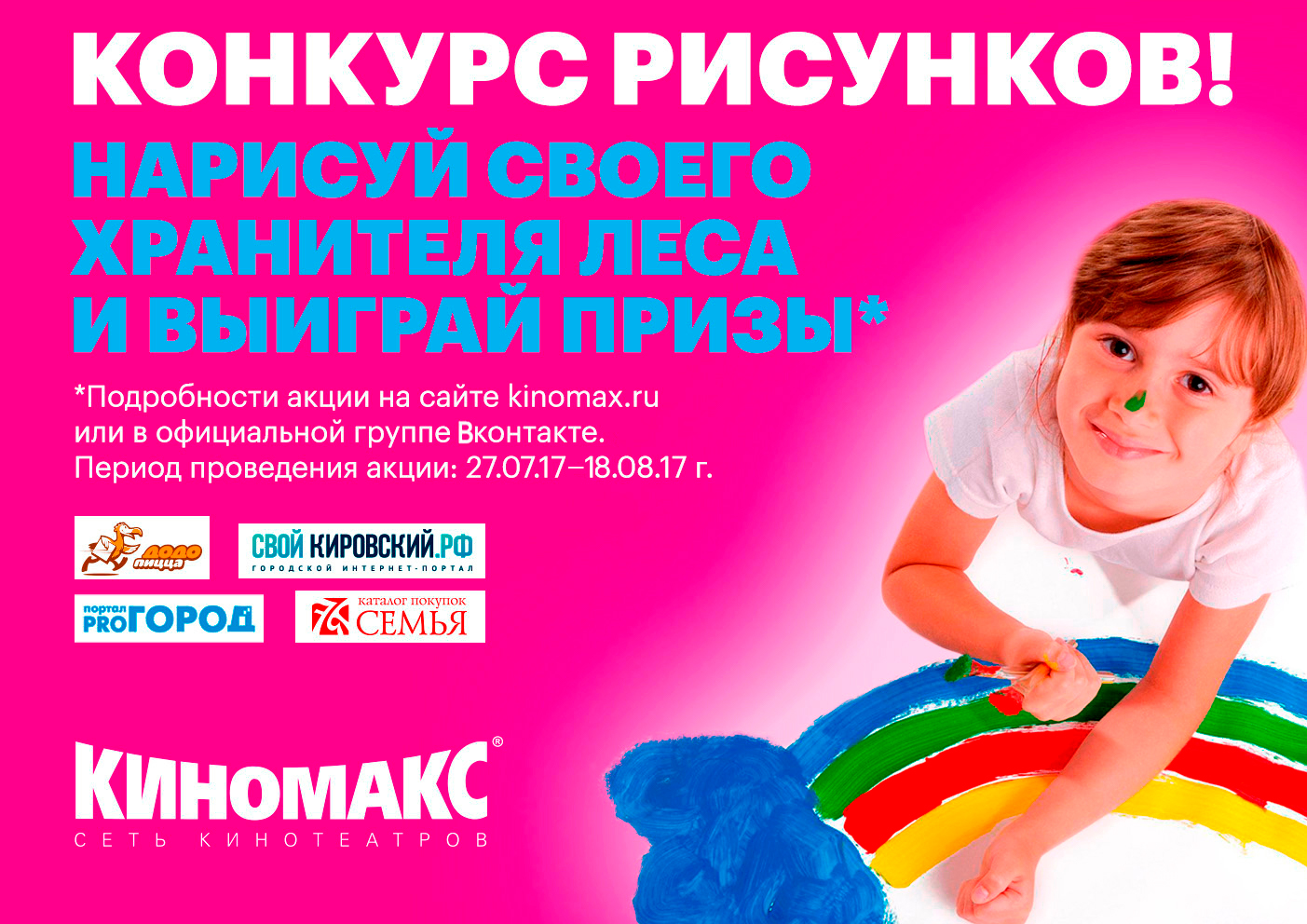 В киноцентре «Киномакс» с 27 июля по 18 августа 2017 г. проходит детский конкурс рисунков «Нарисуй своего хранителя леса», посвящённый выходу на экраны мультфильма «Стань легендой! Бигфут младший!».