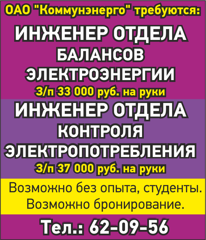 Работать с газетой очень нравится. Количество звонков соискателей, конечно, зависит от уровня вакансии. По "рабочим" вакансиям звонят чаще, ссылаясь на газету. Работа менеджеров устраивает на 100%. При отсутствии менеджера, работающего с нами, всегда можно оставить информацию любому другому сотруднику и быть уверенным в том, что она будет принята к исполнению.